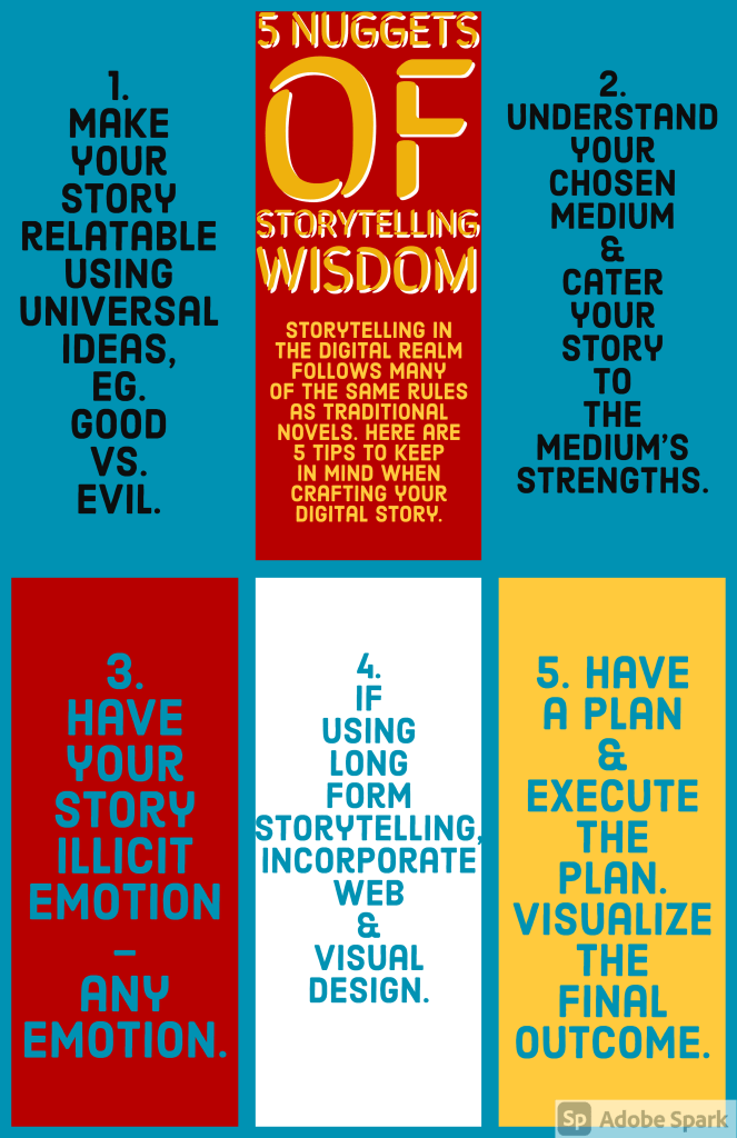 Categories Uncategorized Storytelling Wisdom Post author By Erin Davidson Post date November 18, 2020 No Comments on Storytelling Wisdom Follow these 5 tips when telling a story in the digital realm. Share this: Click to share on X (Opens in new window) X Click to share on Facebook (Opens in new window) Facebook Like Loading... Related ← +I Found Love in the Mundane + → 4 Tricks from Pixar for Story Telling Leave a comment Cancel reply Δ