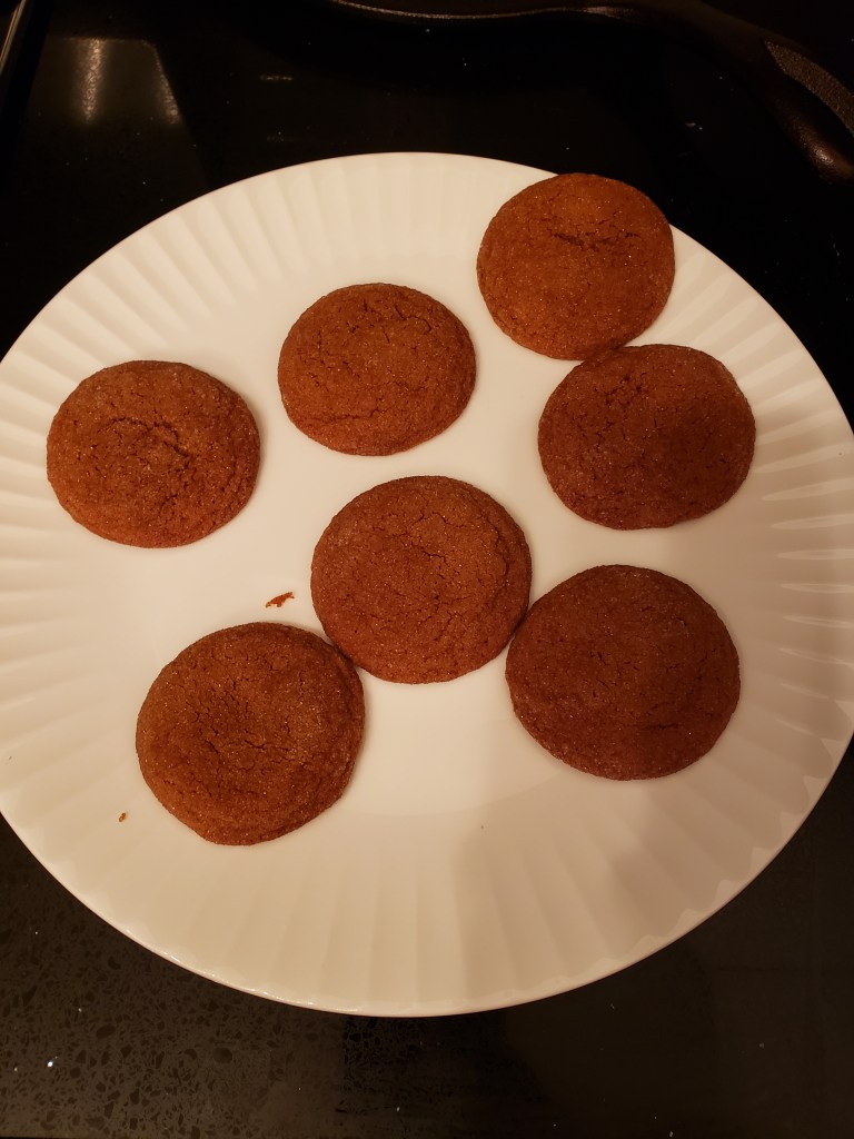 Okay, they came out round and they look pretty soft. I waited until they cooled down to taste. I did pretty good. They’re gingery, soft, chewy and not overly sweet.