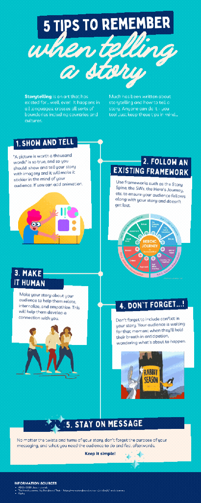 The channels in which you can share your story are ever expanding and they provide the opportunity for creativity. This means you can take advantage of visual storytelling and include images, gifs, memes, infographics, video, and all of sorts of visual aspects to enhance your story and make it more memorable in the minds of your audience.