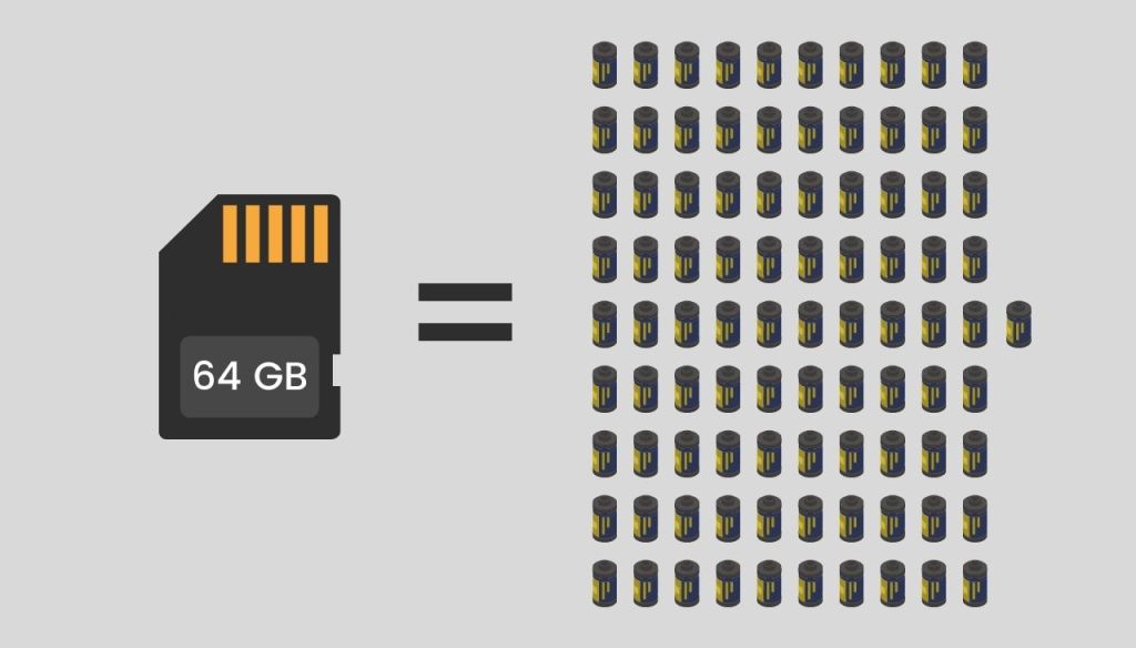 Sure, you could have multiple roles of film but a standard 64GB SD card is equal to 91 rolls of 24-exposure film. (Or 392 rolls if you just shoot .jpg)