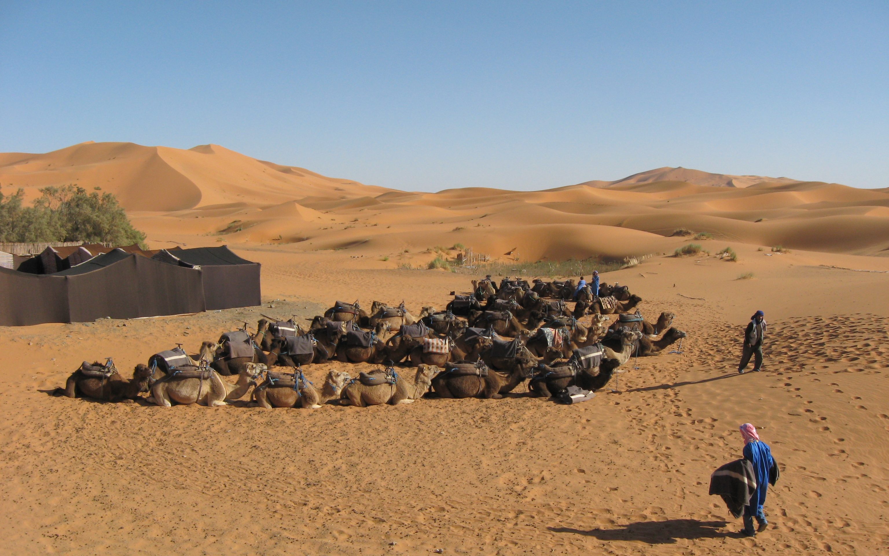 The next thing I knew, I found myself bouncing along a rutted, dirt road at the edge of the desert with a parched throat from the arid, dusty air. The van pulled up to a small encampment of low shelters, nearby a flock of camels sat under the sun. I paid the driver, grabbed my backpack and walked up to one of the men tending the herd. For a negotiated price, he saddled one of the beasts, helped me to get on and handed me the reins. I then headed out into the barren landscape, effectively deserting all my worldly comforts.