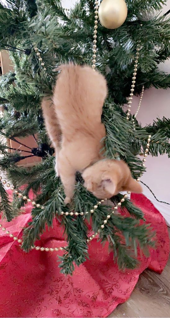 For example, Christmas is an extremely eventful time around our apartment. The Christmas tree is a big attraction for them. Willa’s first Christmas was especially eventful for her. She decided to pretend to be an ornament… Let me show you what I mean…