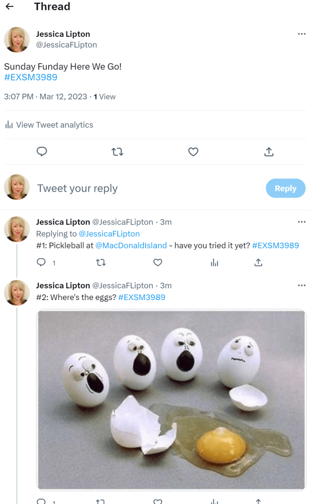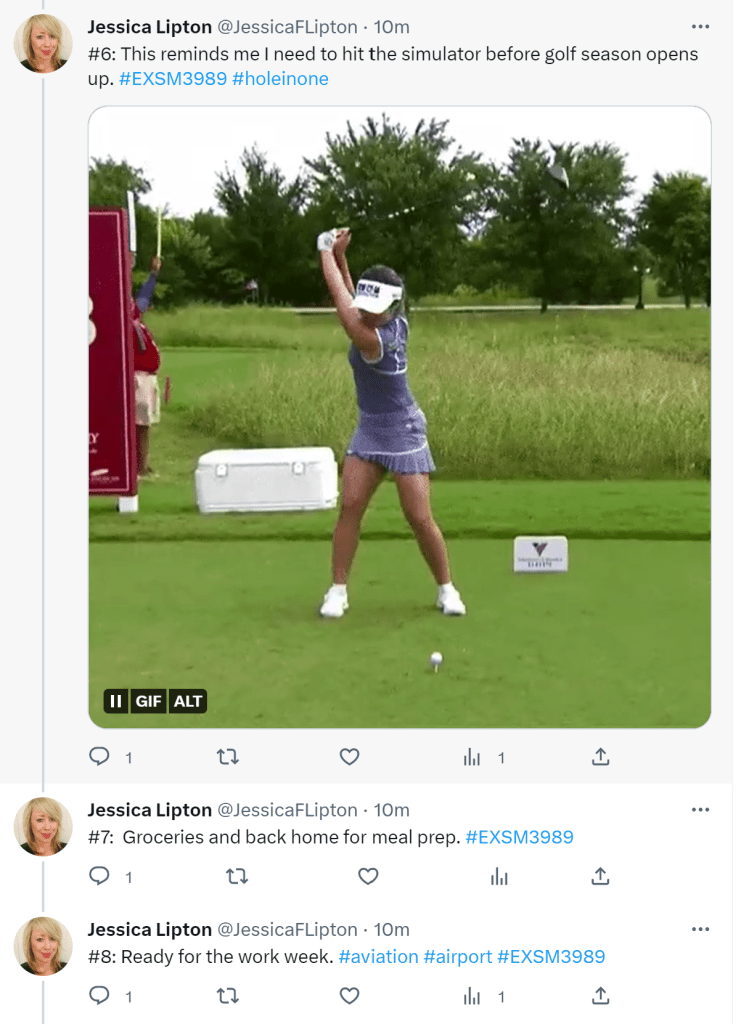 It was not my most exciting Sunday ever, but nonetheless, I have captured the bulk of my day in this live tweet assignment. I am not one for using Twitter – I’m more of a LinkedIn/Facebook kind of girl. I enjoyed the readings this week, and have done my best to apply my learnings to my first ever two Twitter threads.