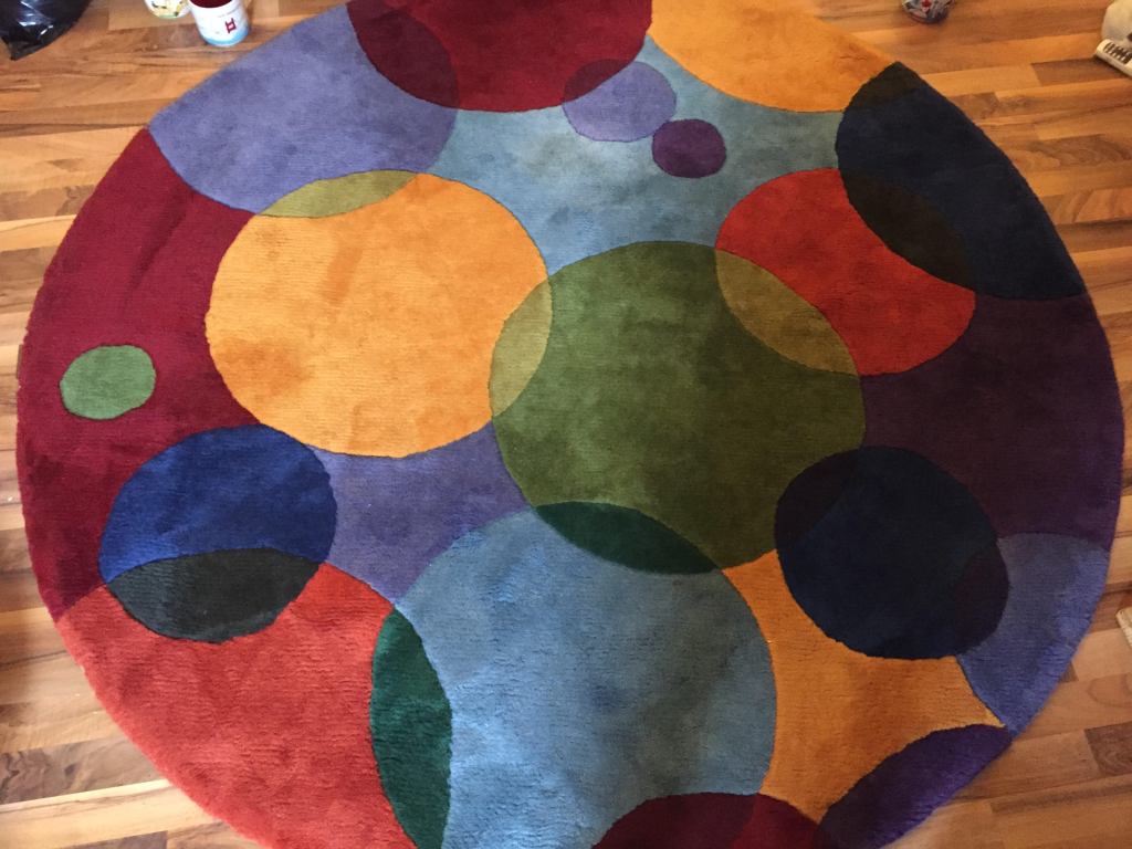 Just before my wife and I got married I was sorting through some stuff at her apartment and she has a very colorful rug. It has many colors that are on the insides of the mugs, which have rotating colors depending on the mug.