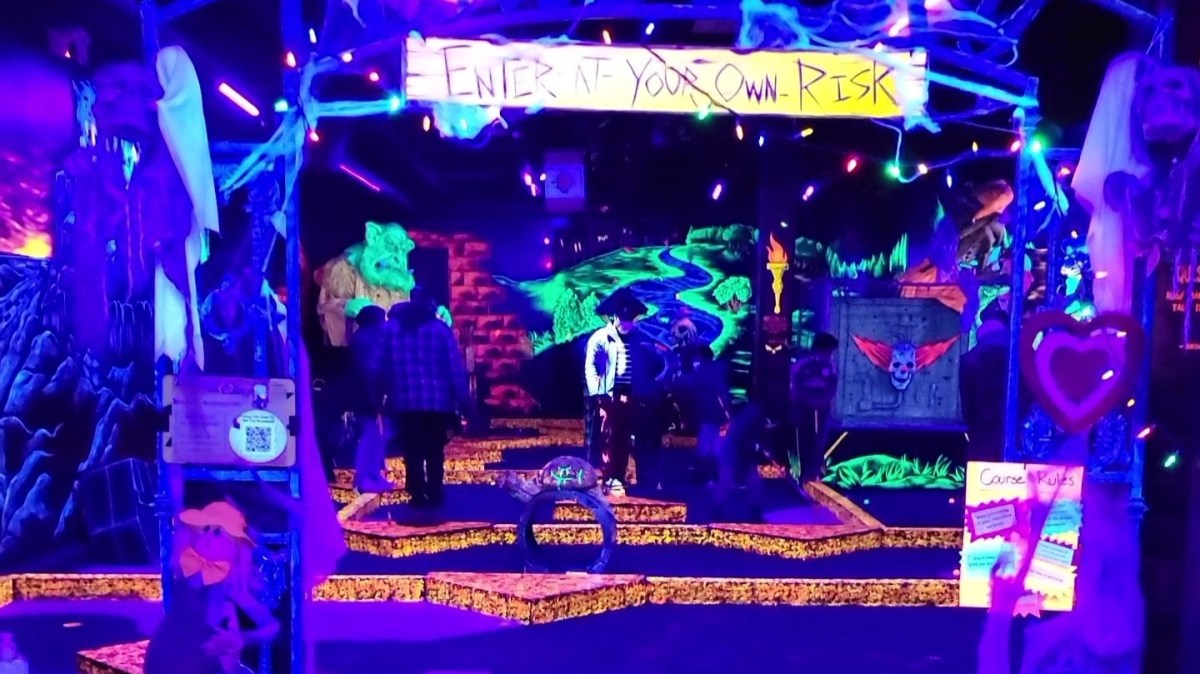 If you haven’t been to Monster Mini Golf in Edmonton, check it out! The entire place is glow in the dark. It includes an arcade, live DJ and 18 holes of mini golf with moving monsters. We were given our clubs and balls and set off to hole number one. Not so bad! This is going to be so much fun! Until about hole four, then reality set in. My husband and I both looked at each other knowing exactly what the other was thinking…yes, we were only on hole four and had another 14 holes remaining.