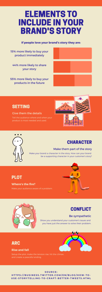 Storytelling for your brand is key to developing a relationship with your audience and potential customers. The emotions you portray and the image you establish in the mind of your audience affects their perception of your brand and products, and their decision to purchase. But how do you tell your brand’s story and create these emotions? There are five elements that should be included in your story.