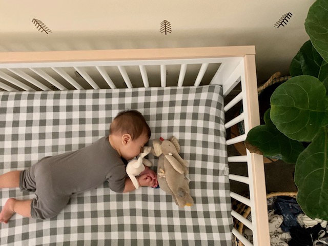 Since our baby was used to having us rocking them for hours, we decided to introduce a comfort object or lovey. This is an object that your baby forms an attachment to. It can be a blanket, stuffed animal, or another small object that helps your little one transition through life changes. This cherished item gives your child something to associate with sleep without relying on you to do the work. While a lovey doesn’t work for all babies, our kids latched on to their loveys very quickly. It also helped them with big transitions like going to daycare or on a family trip.