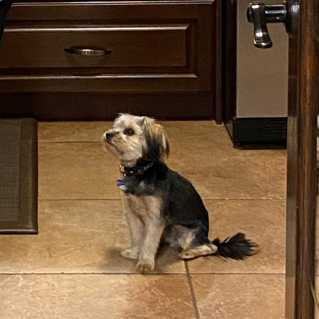 He knew when we were preparing a treat for his dinner and waiting so patiently, like the well-behaved puppy he normally is.