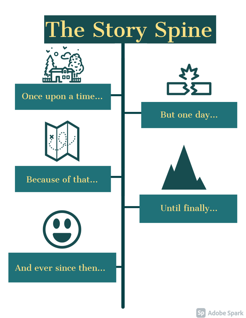 To develop a successful story, you need to look at the story spine; think of it as the bare backbone of a story, which you then fill in with details to flush out the story.