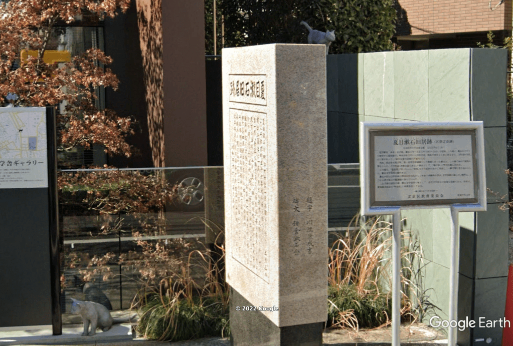 Original home of author Natusme Soseki, in Bunkyo, Tokyo, Japan with geocache cleverly hidden near the 2 cat statues