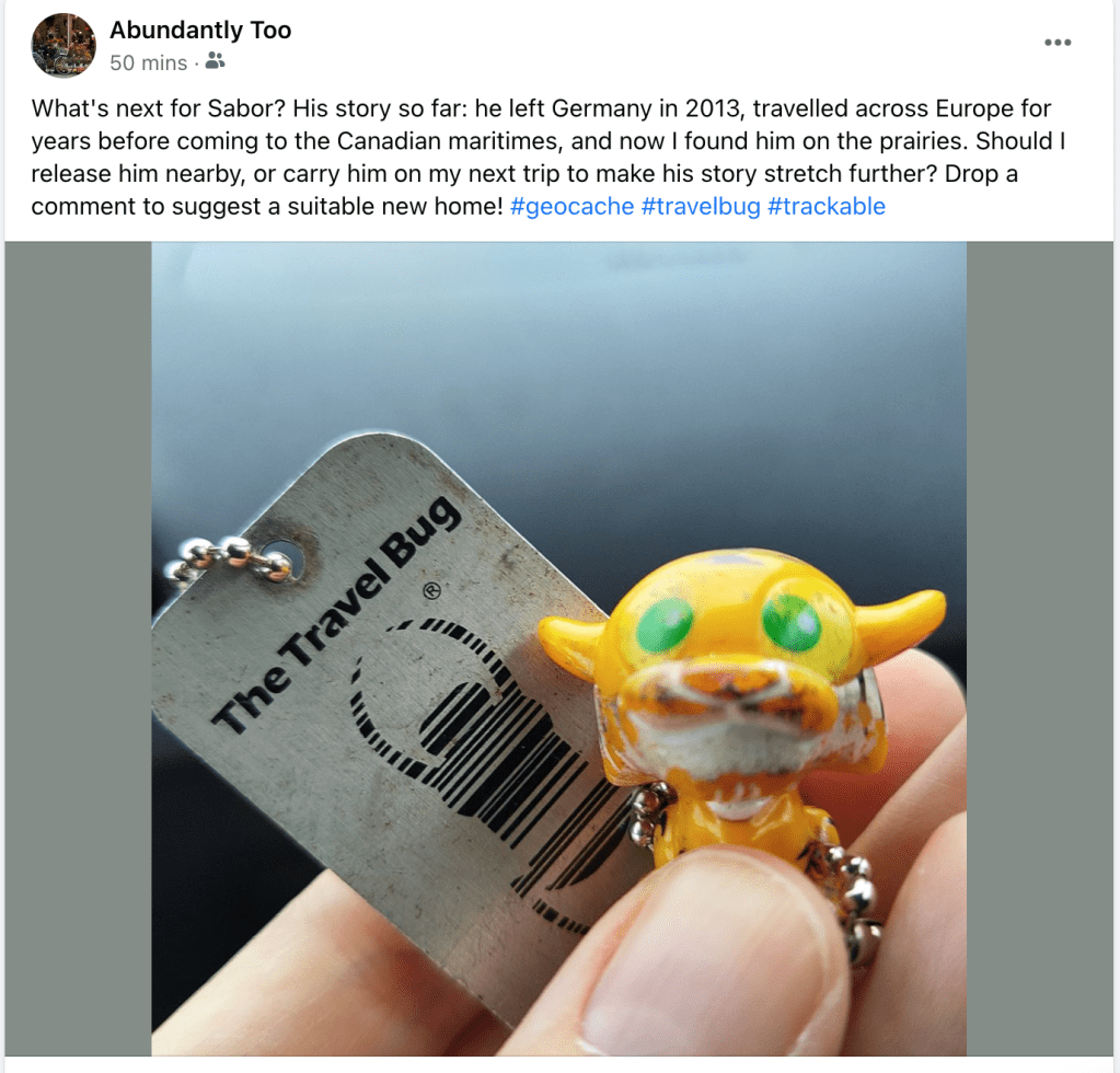Then there are Travel Bugs like this little guy with his own travel tale.